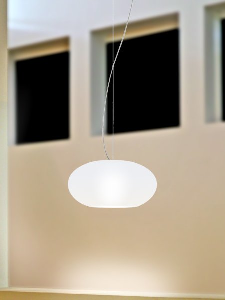 Falls der Elektroanschluss im Raum nicht an der Stelle sitzt, an der die Leuchte hängen soll, empfiehlt sich die dezentrale Befestigungsvariante. Längere Elektrozuleitungen oder Haltedrähte sind gegen Aufpreis möglich.