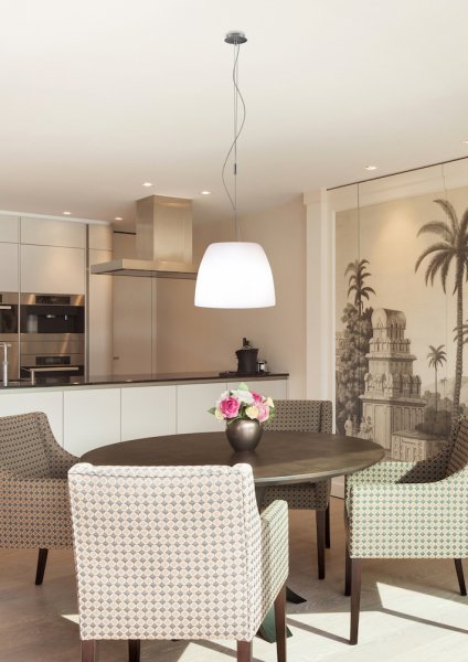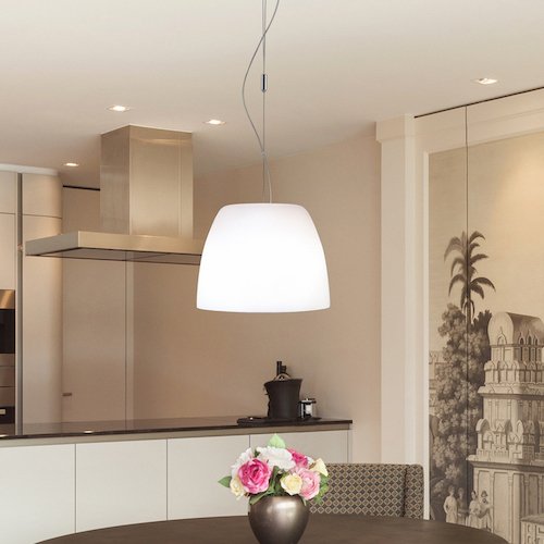 Die Form der Hängeleuchte MARA ist rundum klassisch und dennoch modern in ihrem Auftritt. Die Pendelleuchte fügt sich in allen Einrichtungsstilen harmonisch ein. Der besondere Clou ist die auf der Oberseite des mundgeblasenen Glasschirms tief eingezogene Ebene: So bleibt in der Seitenansicht allein der Eindruck eines schlichten weißen Opalschirms ohne störende Armaturteile. Ganz besonders geeignet ist die Leuchte MARA als Einzelpendel zur Beleuchtung runder Tische oder als Doppelpendel für längliche Tischformen. Die in der MARA eingesetzte E27 Fassung erlaubt die Bestückung mit allen marktgängigen LED Lampen und den problemlosen Austausch der Lichtquelle. Die MARA Pendelleuchten beinhalten die bewährte Casablanca Pendelmontage, die mit den mitgelieferten Teilen eine zentrale als auch vom Elektroanschluss dezentrale Aufhängung ermöglicht und individuelle Kabellängen sowie Ausführung als höhenverstellbares Zugpendel gestattet. Als Zubehör können bei Casablanca wie für alle Pendelleuchtenmodelle auch für die Hängeleuchten MARA durchdachte Sonderteile wie zum Beispiel Deckenschienen für individuelle seitliche Verstellung oder auch Abhängungen für Schrägdecken bezogen werden.