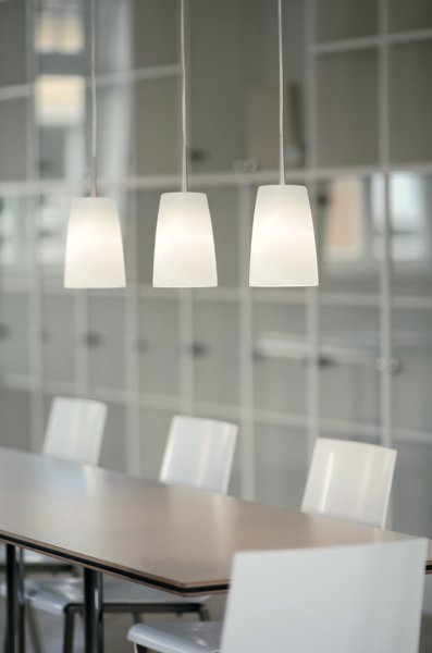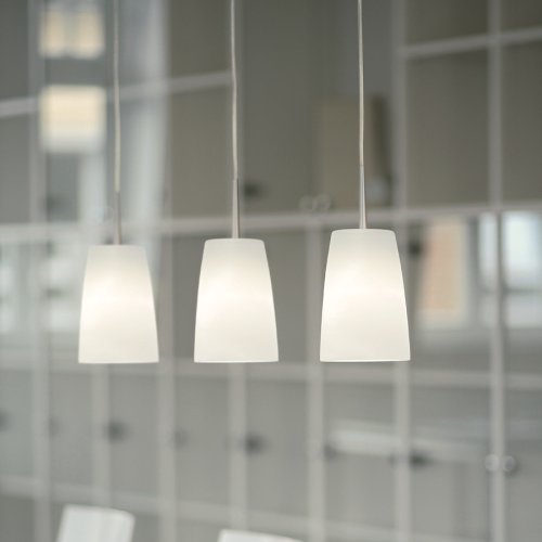 Die Leuchten der Designfamilie MESA zeichnen sich durch einen Lampenschirm mit einem besonderen Detail aus: Die klassisch konische Glasform wird durch eine abgerundete Schulter an der Oberseite elegant vollendet. Die originelle Kreation strahlt beleuchtet ein weiches und blendfreies Licht aus. Die enthaltenen E27 Lampenfassungen für LED Leuchtmittel lassen den Anwender frei entschieden zwischen einer harmonisch warmem oder sachlich kühlen Lichtstimmung. Das mundgeblasene Opalglas mit seidenmatter Aussenschicht mit einem Durchmesser von 13,5 cm sowie einer Höhe von 19 cm ist lieferbar als Einzelpendel, als dreiflammiges oder auch vierflammiges Mehrfachpendel mit einer Breite der Deckenschienen von 100 bzw. 120 cm. Die Deckenbaldachine sind ebenso wie die Metallteile der Pendel aus handgebürstetem matten Aluminum, welches mit mattem Klarlack gegen äussere Einflüsse geschützt ist. Die aus klarem Material bestehenden Zuleitungen der Pendelleuchten sind 150 cm lang und können selbstverständlich auf jedes beliebige Mass gekürzt werden. Die Leuchten MESA sind aufgrund Ihrer Schirmhöhe blendfrei einsetzbar als Tischbeleuchtung ebenso wie in allen anderen Wohnsituationen.