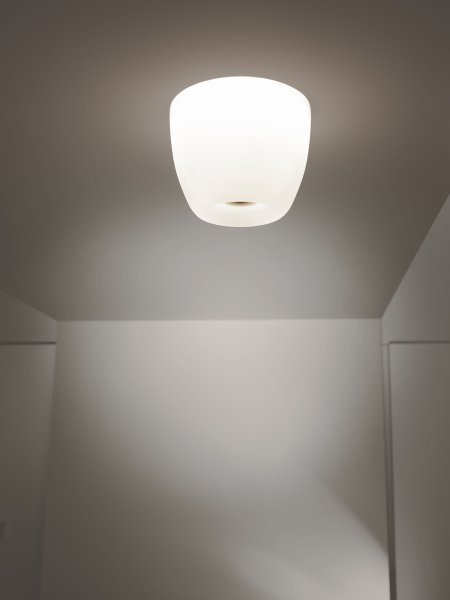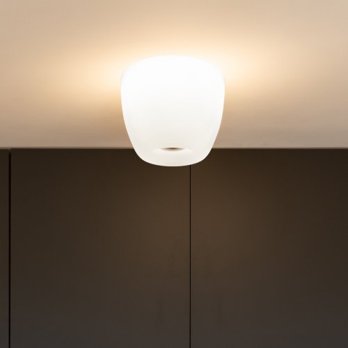 Mouth-blown opal glass creates a very special light that is characterized by warmth and glare control, making it ideal for lighting living spaces. The MARA ceiling light sits terminally on the ceiling, preventing dust from entering and unnecessary cleaning efforts.