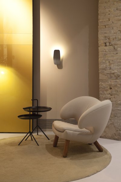 Like a carefully folded thin sheet, the lamp ASHIYA seems to float on the wall, underlining and even flattering it.
