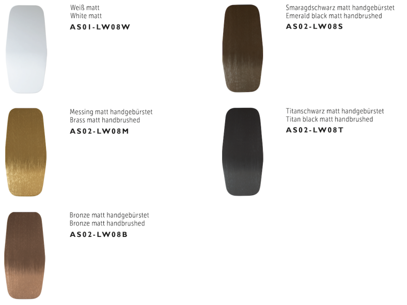 The carefully hand-brushed surfaces of the brass, bronze, emerald black and titanium black coatings emphasize the high-quality appearance with their noble metallic sheen.