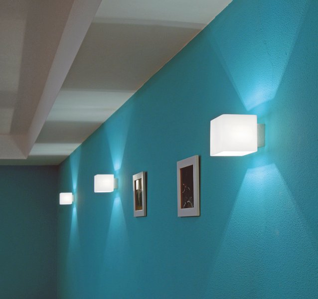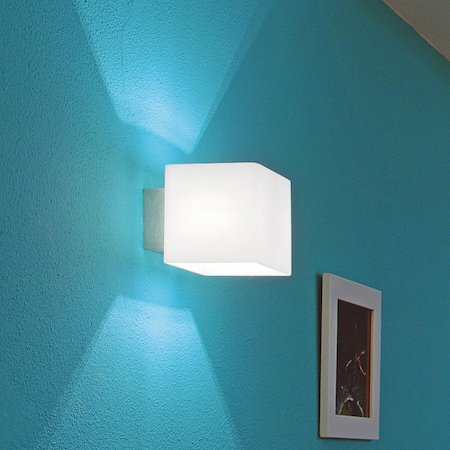 A cube made entirely of opal glass, shining all around with light accents upwards and downwards - this is the CUBE wall lamp from Casablanca.